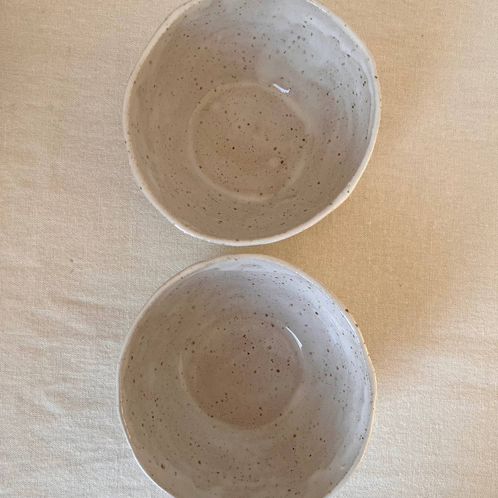 Small soup/breakfast/stew/snack sized bowl set made using slab building techniques with a painterly glaze design.